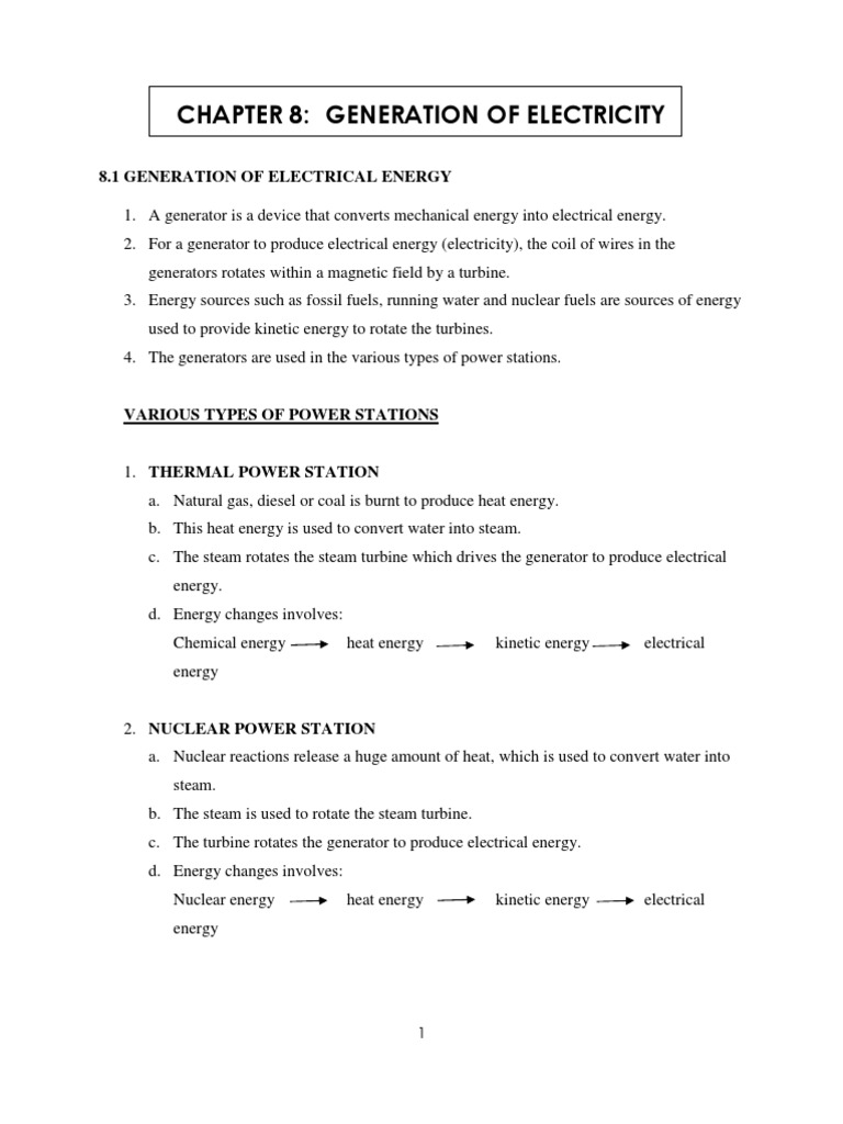 Chapter 8 Generation Of Electricity