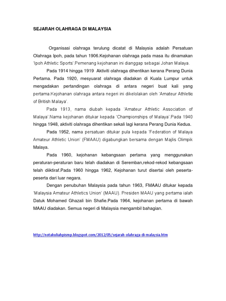 Sejarah Olahraga Di Malaysia