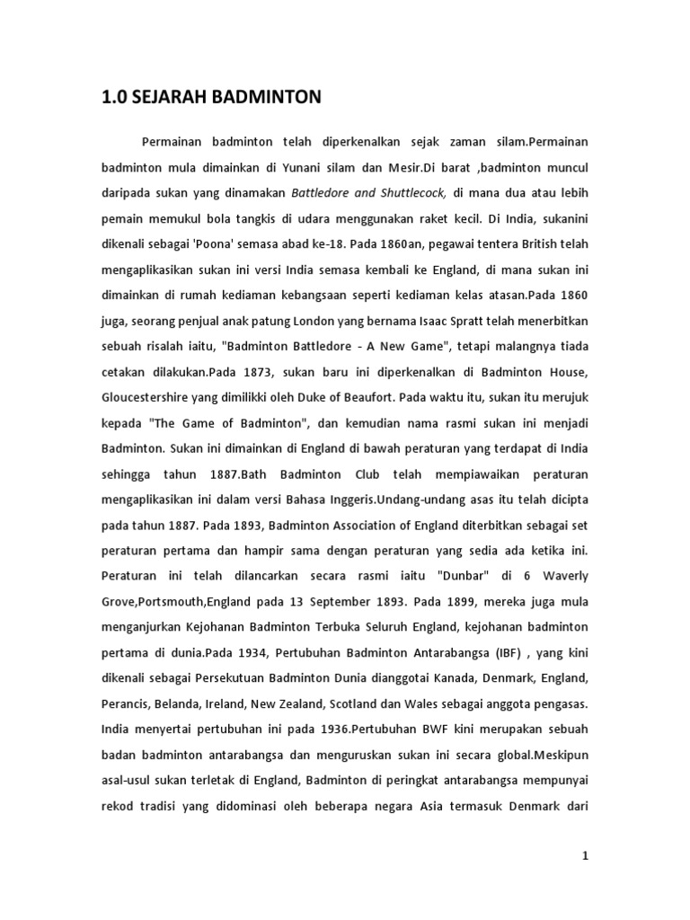 Doc Pengenalan Badminton Noor Husna Academia Edu