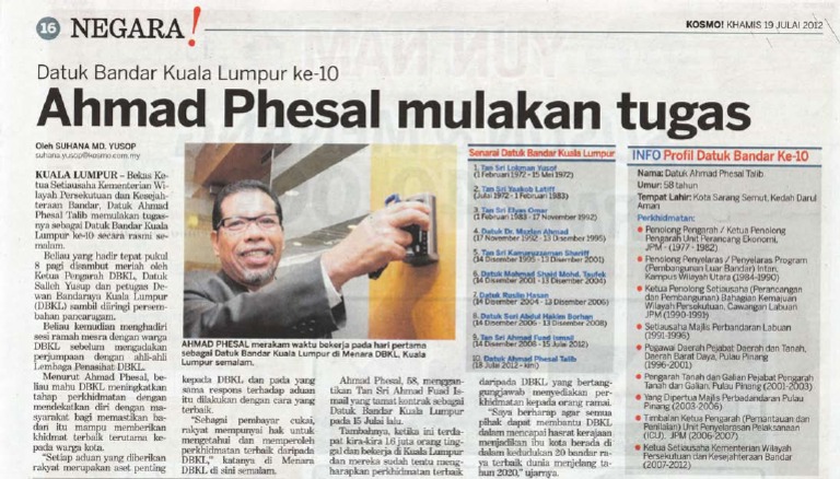 Datuk Ahmad Phesal Bin Talib Datuk Bandar Kuala Lumpur Ke 10