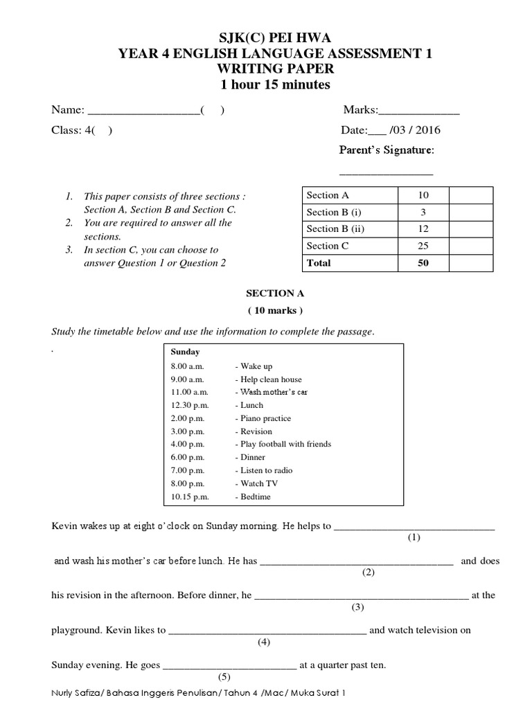 Fillable Online Sjk C Pei Hwa Year 4 English Language Assessment 2 Fax Email Print Pdffiller