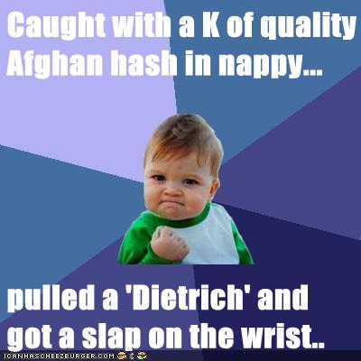Caught With A K Of Quality Afghan Hash In Nappy Pulled A Dietrich And Got A Slap On The Wrist Cheezburger Funny Memes Funny Pictures