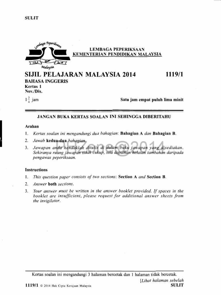 Kertas Sebenar 2014 Bahasa Inggeris 1119 1