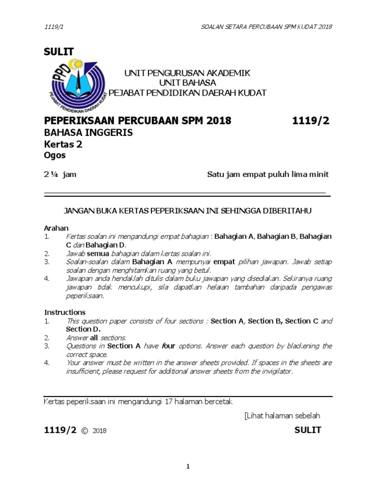 Compilation Of English Spm Trial Exam 2018 Cw Pdf