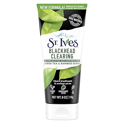 Amazon Com St Ives Blackhead Clearing Face Scrub Clears Blackheads And Unclogs Pores Green Tea And Bamboo With Oil Free Salicylic Acid Acne Medication Made With 100 Percent Natural Exfoliants 6 Oz Beauty