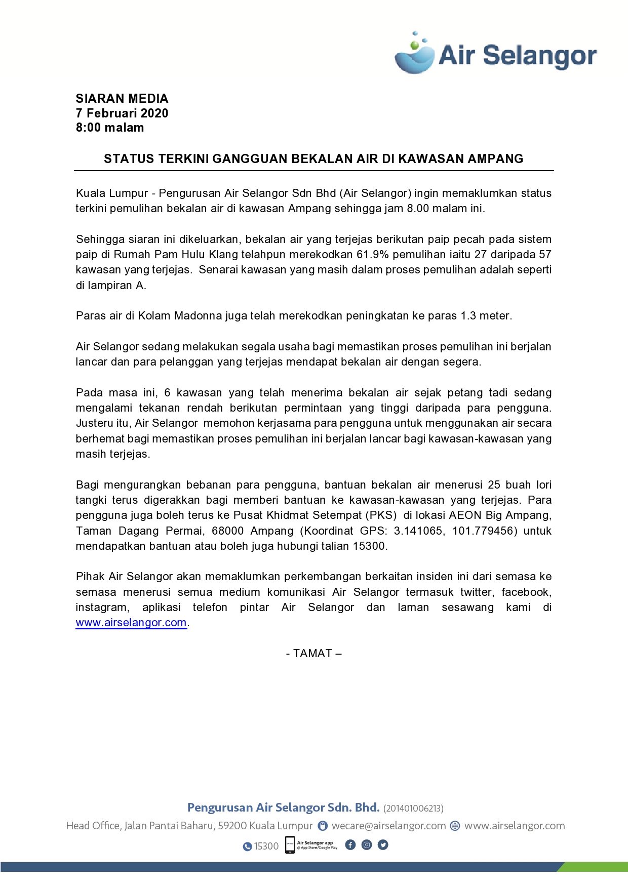 Air Selangor در توییتر Status Terkini Gangguan Bekalan Air Di Kawasan Ampang Https T Co O0zj6cahct