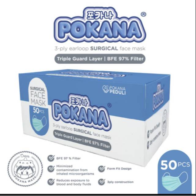 Pokana Surgical Face Mask 3 Ply Earloop 50 S Shopee Indonesia