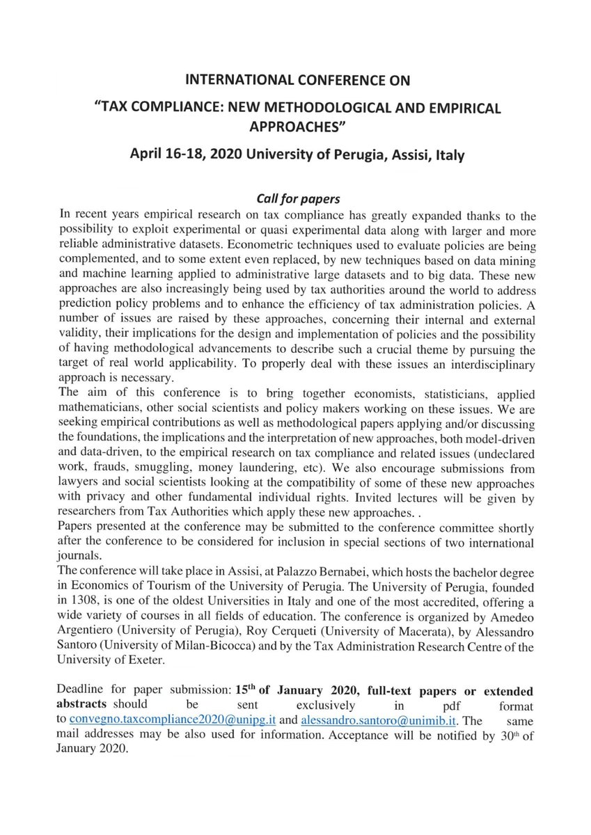 Tarc On Twitter International Conference Tax Compliance New Methodological Empirical Approaches Organised By Argentiero Cerquenti Santoro Tarc University Of Perugia Assisi Call For Papers Now Open For Those Working On