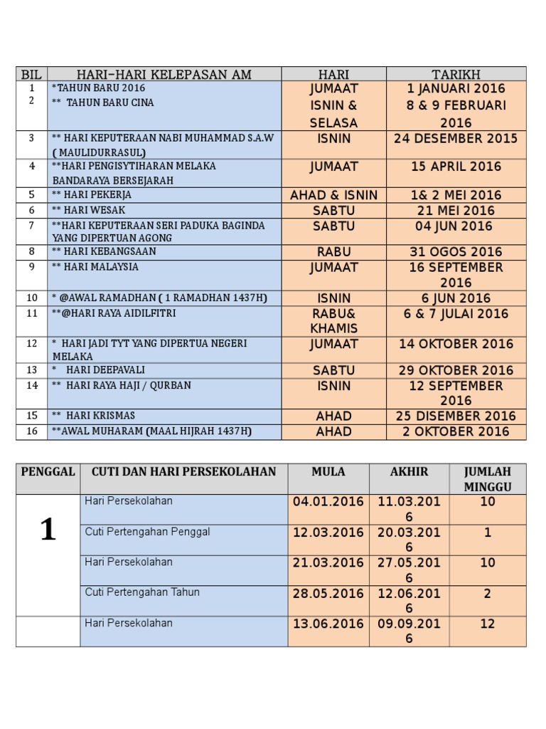 Kalendar Cuti Umum Dan Cuti Sekolah 2016